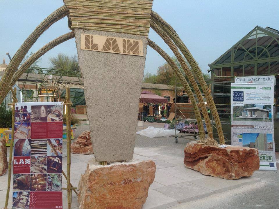 Poi Green Utopia, una “città vegetale” di oltre 2mila metri quadrati animata da laboratori e workshop operativi mostrare a più persone possibili le tecniche dell’architettura vegetale e alternativa dove è stata allestita un’architettura open air la cui struttura è composta da uno scheletro di archi di canna ancorati ad un basamento di pietra e rivestita da calce e canapa.
