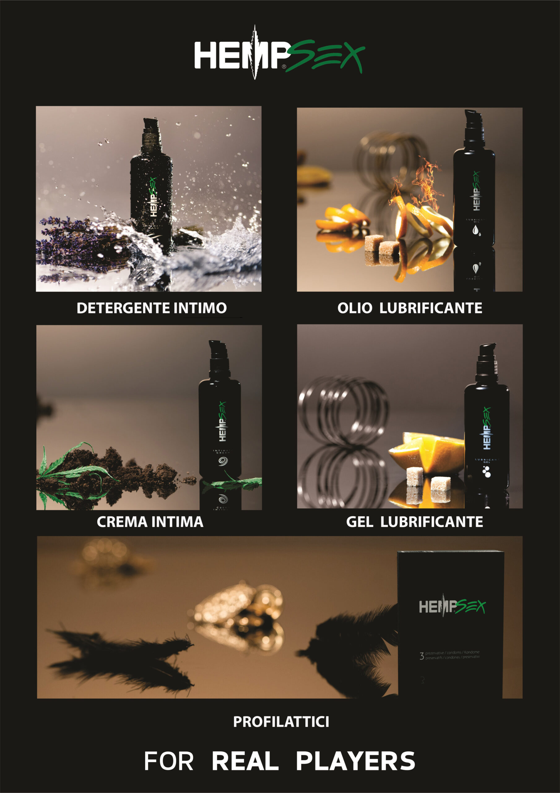 Come si colloca HempSex nel mercato dei prodotti intimi e per la coppia, e qual’è il suo pubblico? Abbiamo clienti di tutte le età: ragazze molto giovani che vogliono un detergente intimo delicato, donne più avanti con gli anni che hanno bisogno di un olio lubrificante 100% naturale e ricco in omega 3 per nutrire i tessuti ed eliminare sensazioni dolorose durante i rapporti. E poi donne e uomini “Real Players”, come amiamo chiamarli, che cercano e trovano nuove emozioni e tranquillità con prodotti come preservativi di alta qualità e gel lubrificante naturale.