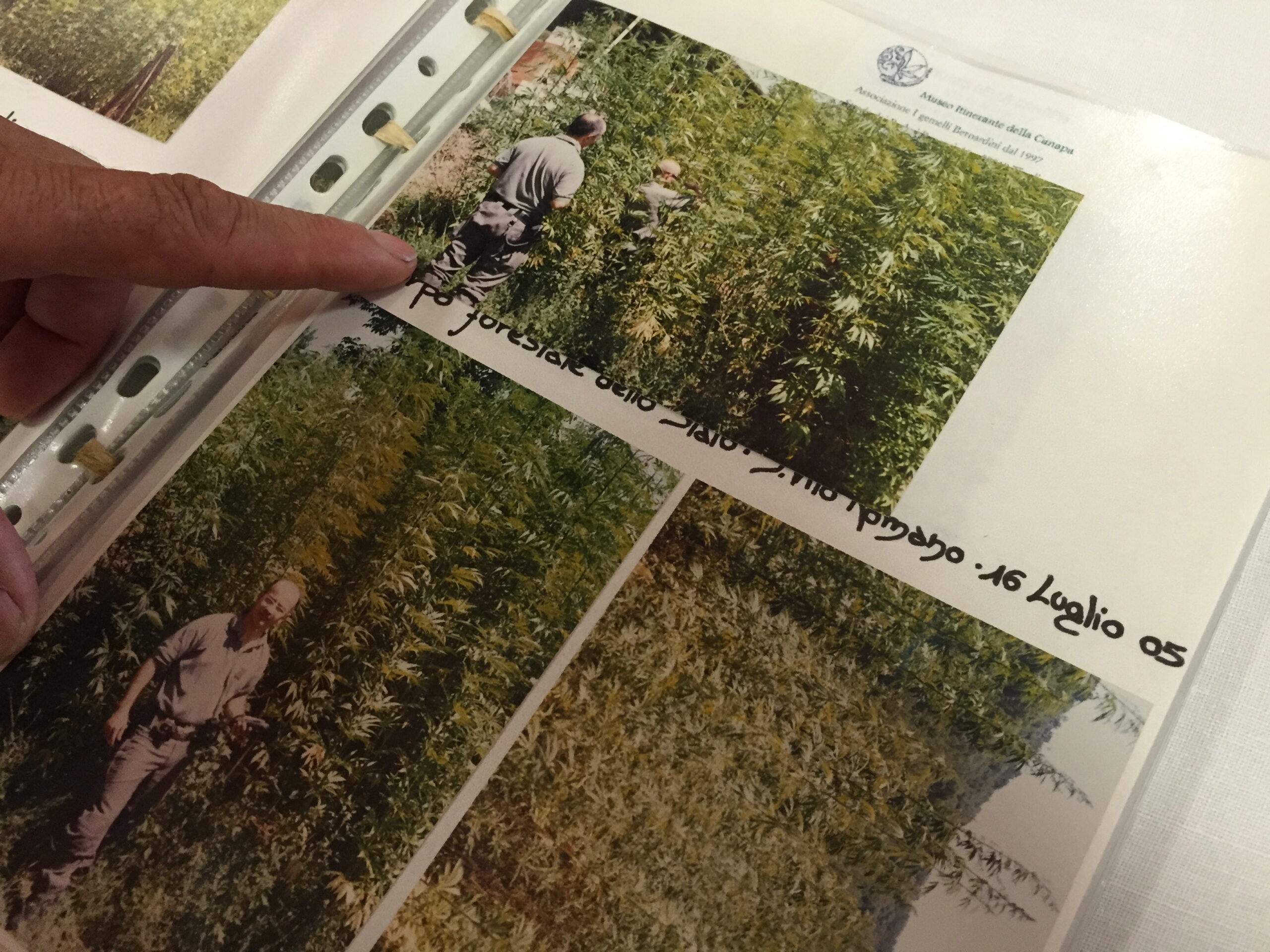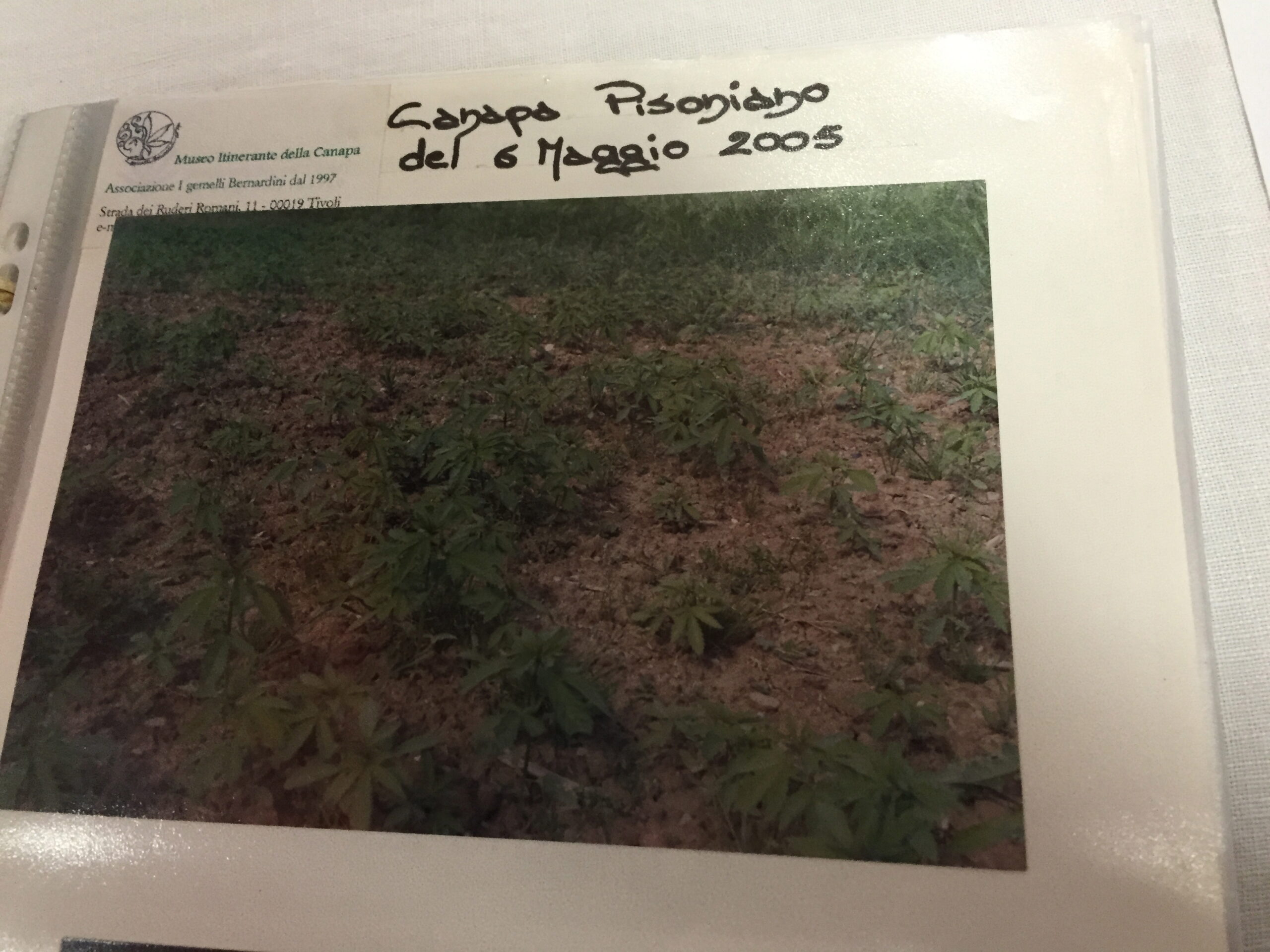 Ad ogni modo nell’agosto del 1997 non si coltivava e non si riusciva nemmeno a recuperare il seme, ma i gemelli Bernardini durante la mostra volevano mostrare anche come è fatta una pianta di canapa dal vero. Così Domenico Bernardini si reca presso un vivaio di Roma cercando semi di canapa, che non avevano. Avevano però i semi di canapuccia, usati come mangime per gli uccelli. Così si rivolge alla dottoressa Monzavi del ministero della Sanità che lo autorizza a piantare 20 metri quadri di canapa recintata assumendosene le responsabilità. Loro ne piantano 3 metri quadri, recintati, in modo da poter mostrare la pianta ai visitatori, una bella pianta di 3,50 metri.