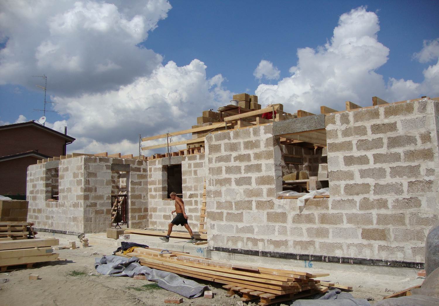 Ci troviamo a San Giovanni in Persiceto in provincia di Bologna ed il progetto, curato da Olver Zaccanti, geometra e tecnico di ANAB che da anni si prodiga per far conoscere questo metodo di costruzione sostenibile, è iniziato nel 2009 ed è stato completato nel 2012. Nel mezzo c’è stato il terremoto che ha colpito l’Emilia Romagna e fatto crollare o danneggiato diverse abitazioni della zona, ma quella dei signori Franchini ne è uscita indenne grazie alle caratteristiche della canapa e calce; come ha spiegato Zaccanti, “dal punto di vista antisismico la canapa e la calce sono perfettamente in sintonia con la struttura in legno all’interno e quindi si muovono in armonia tra di loro senza creare lesioni; naturalmente per terremoti di un certo tipo: se si va oltre il sesto-settimo grado della scala Richter cominceranno ad esserci delle lesioni anche in questo caso, però anche da questo punto di vista abbiamo a che fare con un materiale che eventualmente si potrebbe frantumare ma non rovesciare, migliorando anche in questo caso la sicurezza delle persone”.